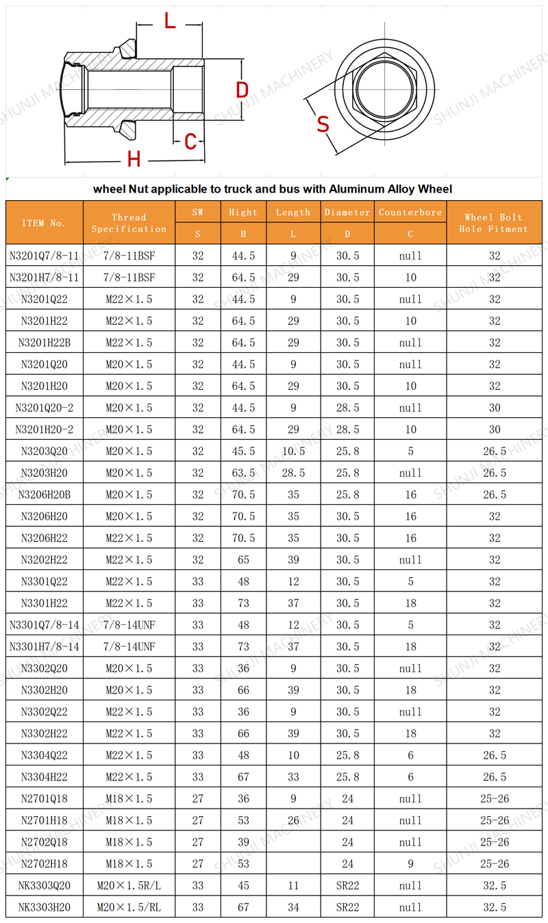 • product description:矮六角客车铝圈车轮螺母,适配双轮,后轮螺母