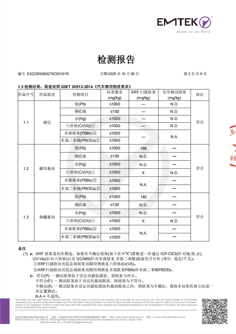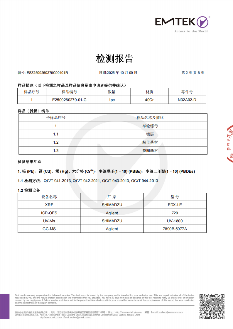 CNAS Certification for Environmental Prohibited and Restricted Substances in Dacromet Surface