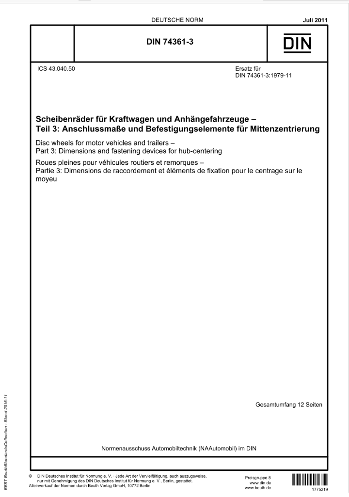 DIN 74361-3 (2011-07-00)Technical Documentation